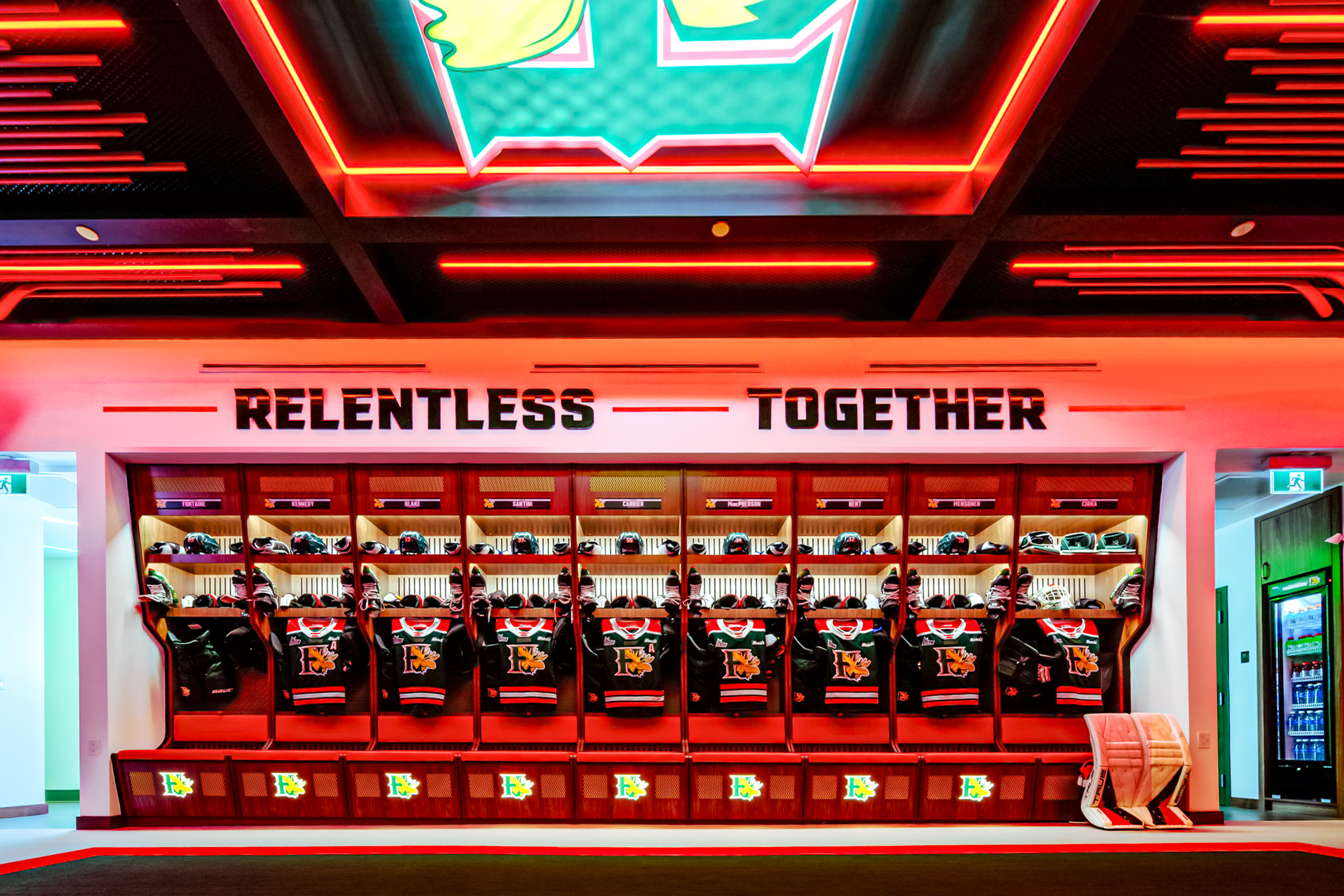 The Herd have charged into 2026 with the completion of their new state‑of‑the‑art players locker room, a 3,820‑square‑foot transformation located within the Scotiabank Centre in Halifax, NS. Backing their catchy phrase, “You just can’t stop the Moose,” the Halifax Mooseheads Hockey Club has overhauled their game‑day facilities with a comprehensive redevelopment that now includes custom player’s lockers, a player’s lounge, equipment and medical facilities, coaching offices, team showers, a steam room, cold tubs, and in‑house commercial laundry facilities. The new locker room boasts custom millwork throughout, artistic heritage elements and artwork, and AV‑controlled lighting in what is sure to become the building’s iconic new “hype tunnel.”